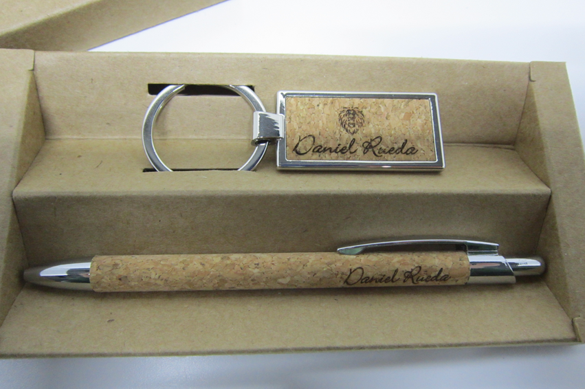 Etiquetas: artigos personalizados, brindes personalizados, conjunto esferográfica e porta-chaves, cortiça e metal, esferográfica personalizada, esferográficas personalizadas, gravação a laser, ofertas personalizadas, porta-chaves personalizado, prendas personalizadas, produtos de qualidade